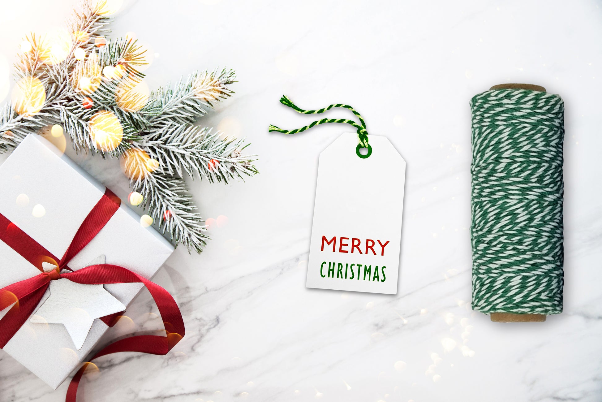 Green and Red Christmas Gift Tags for Addressing Presents on White Kraft Yardstick - 50 Tags, Pre-Strung