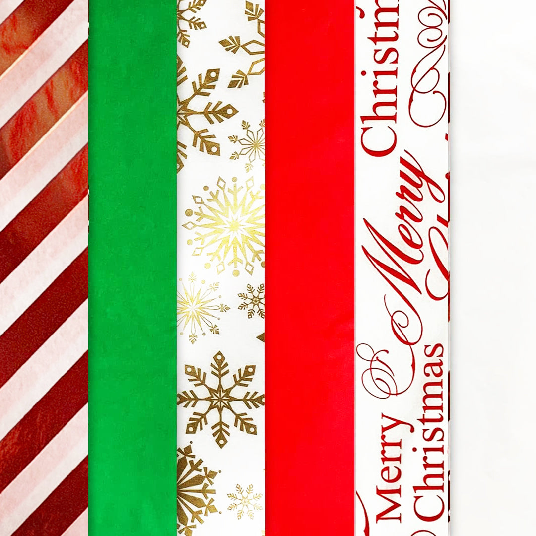 - Features FOIL and METALLIC accents on Christmas Designs printed on Tissue Paper