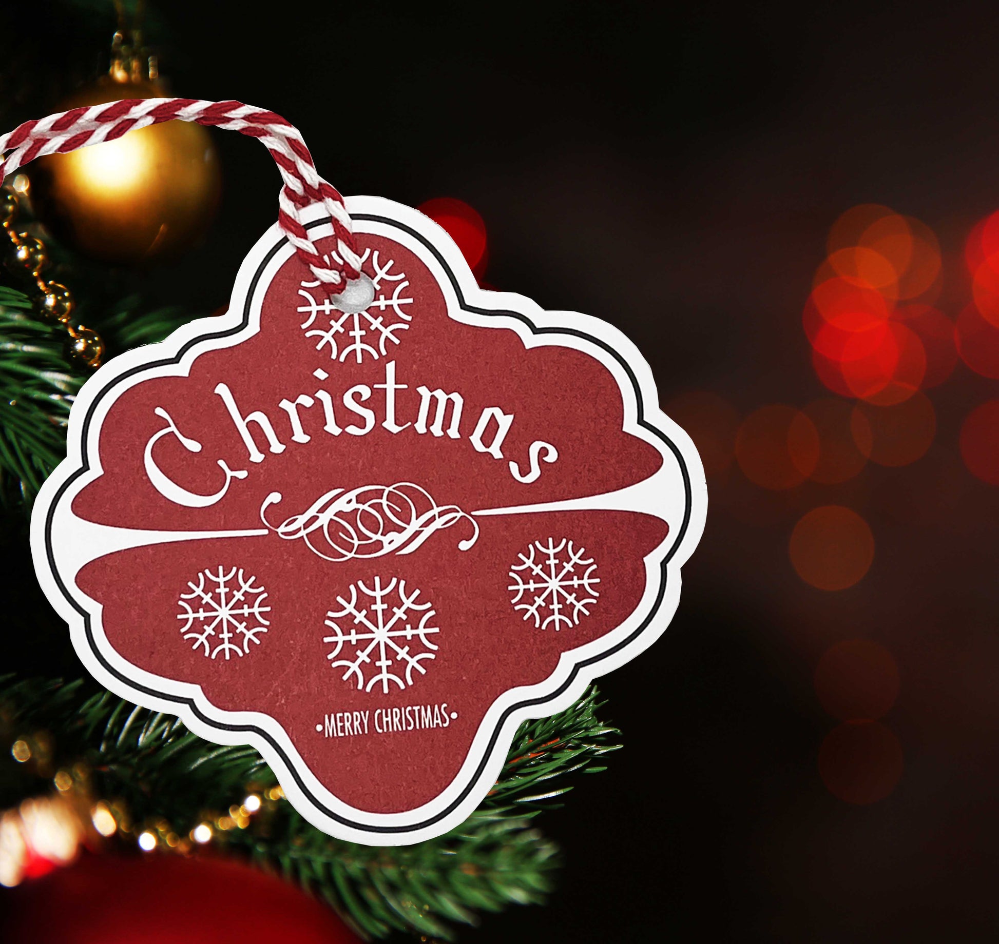 15 Vintage Red Kraft Gift Tags, Pre-Strung with Christmas Twine